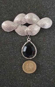 Brosch, svart, 250 kr.